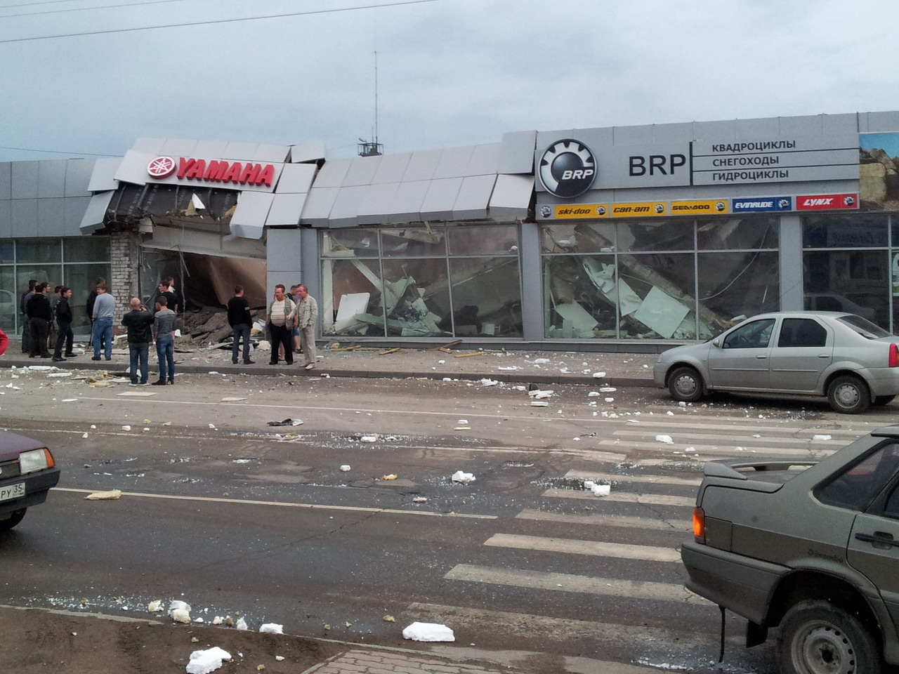 Неуправляемый автобус на полном ходу врезался в здание автосалона "Ямаха"