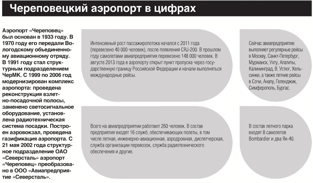 Череповецкий аэропорт в цифрах, авиапредприятие "Северсталь".