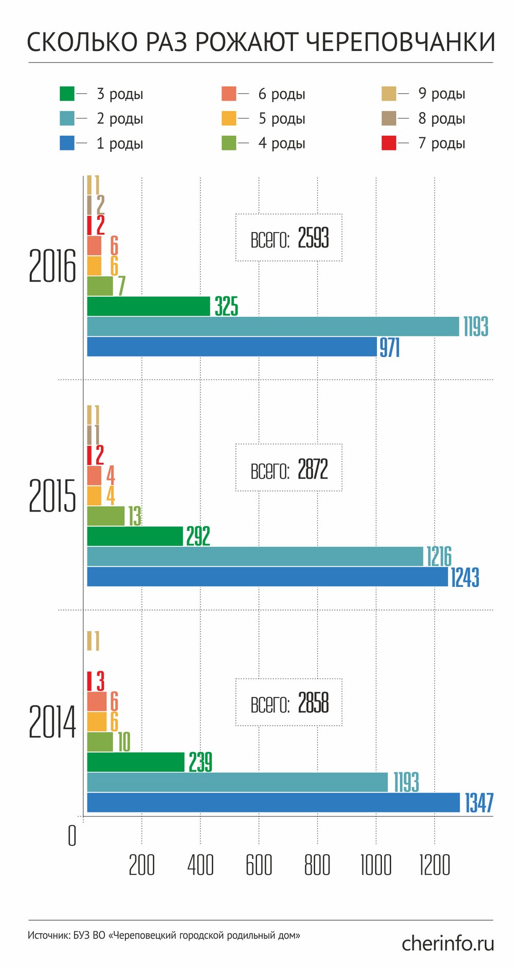 Инфографика: какого по счету ребенка рожают череповчанки, 2014-2016 гг. Данные городского роддома.
