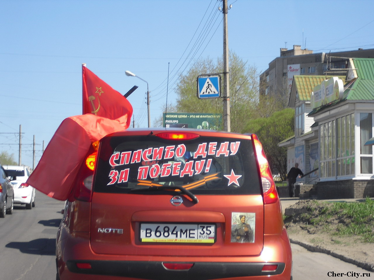 Автопробег 9 мая 2011 года был организован инициативной группой череповчан под лозунгом "Спасибо деду за победу!".