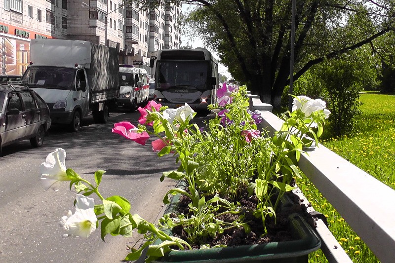 На ограждениях череповецких дорог появились цветники