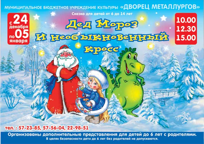- С 24 декабря по 30 декабря : 10.00; 12.30;15.00