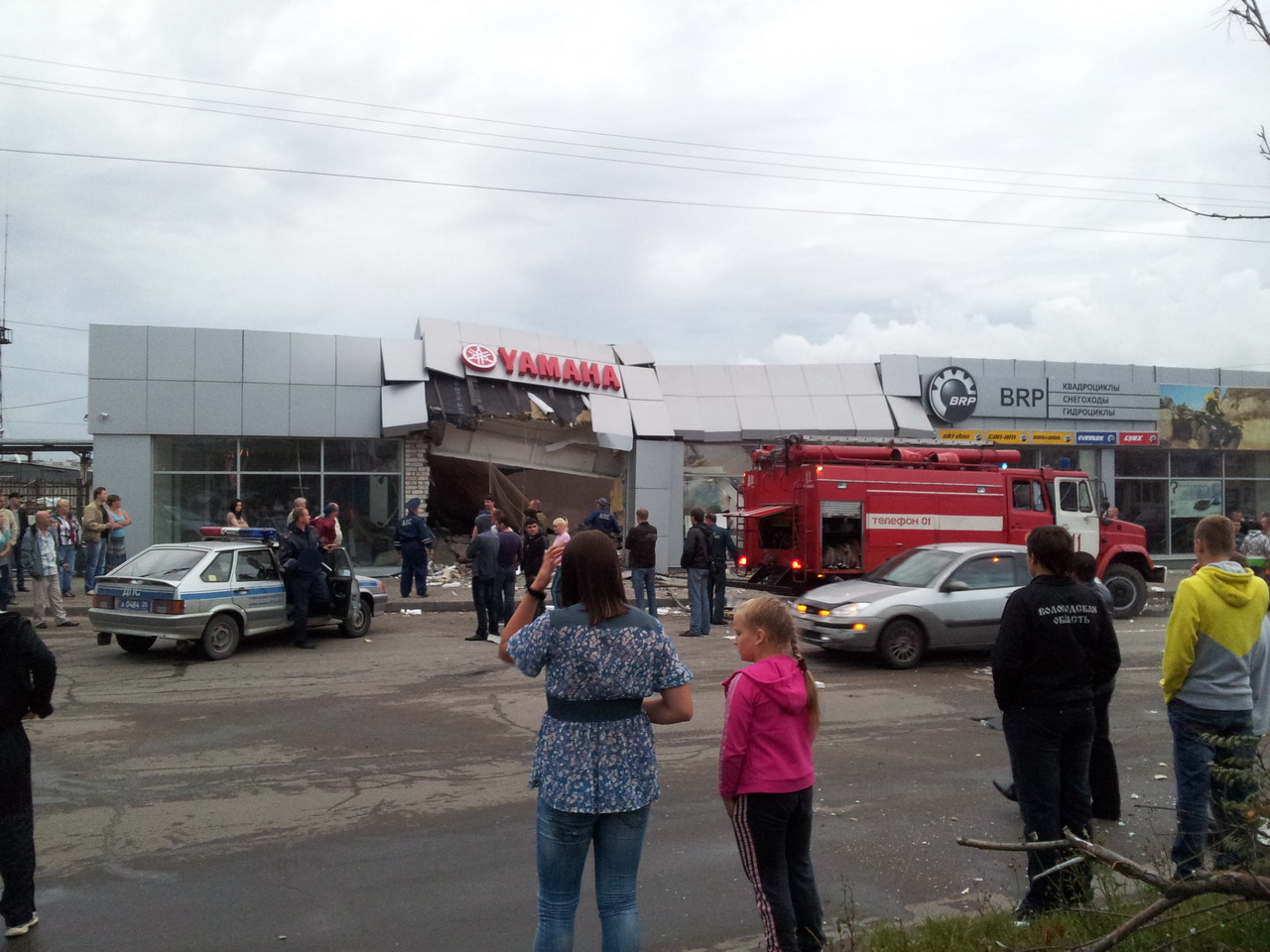 Неуправляемый автобус на полном ходу врезался в здание автосалона "Ямаха"