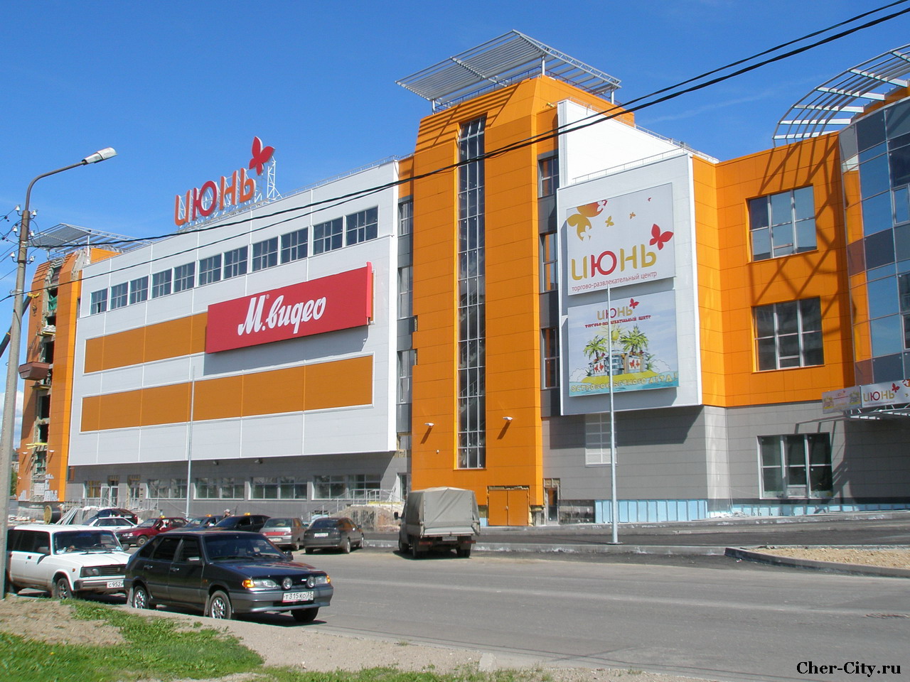 Окончание строительства ТРЦ "Июнь",вид со стороны улицв Годовикова. Рекламный баннер "М.Видео".