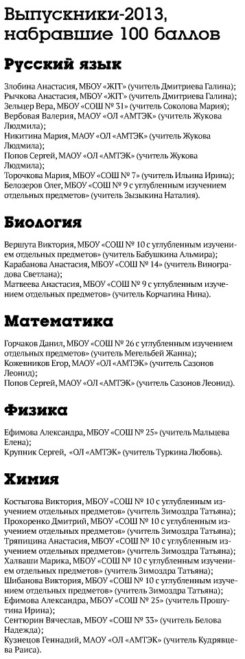 Выпускники-2013, отличники ЕГЭ