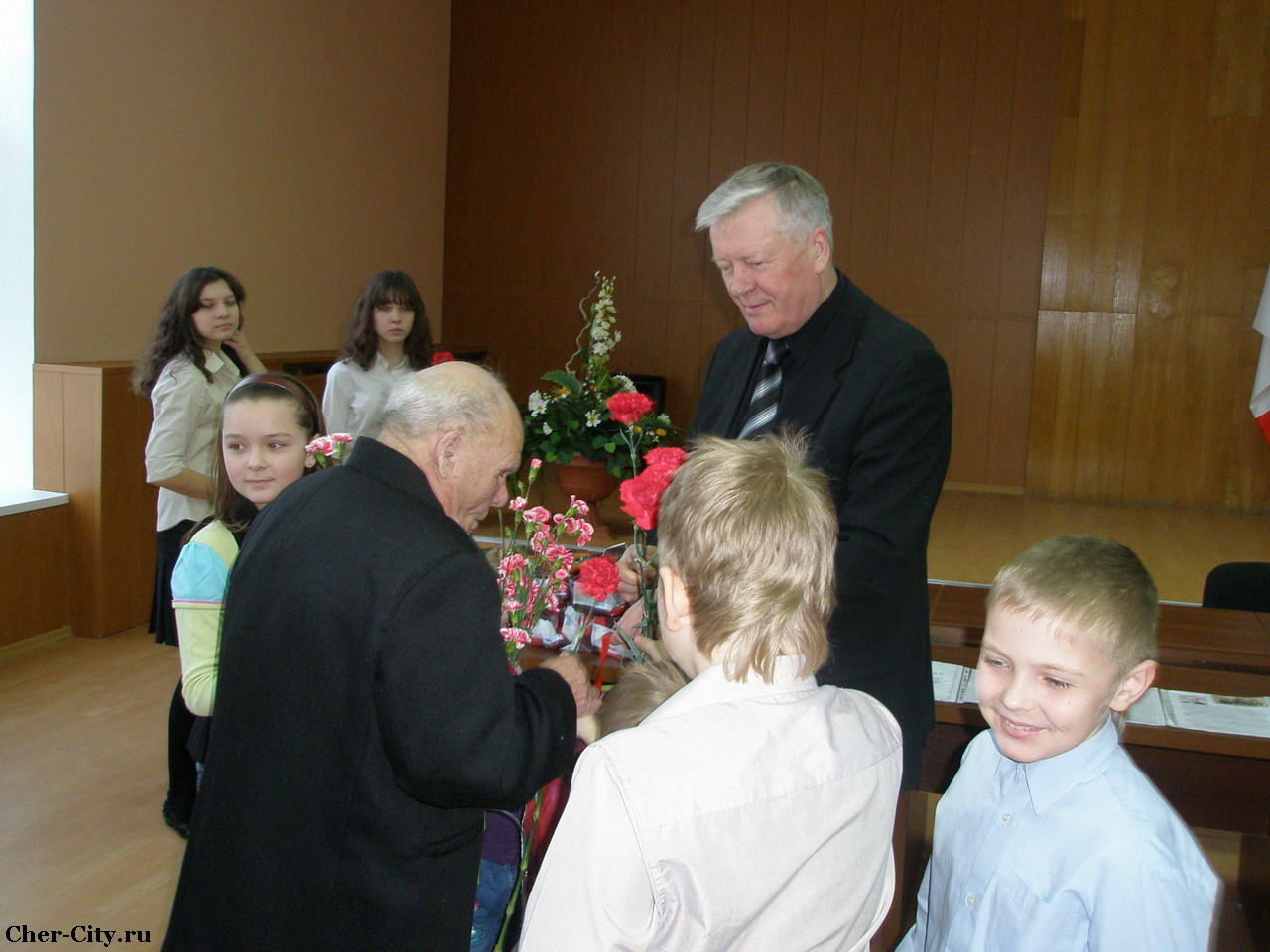 Награждение ветеранов Череповецкого района 19 февраля 2010 г. Глава Череповецкого района Родичев Л.Н. и правнуки поздравляют ветерана.