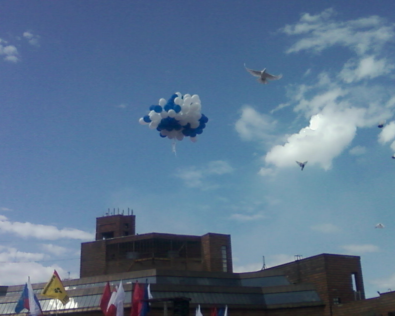 В заключении праздника шарики полетели в небо. Почему-то красных среди них не оказалось...