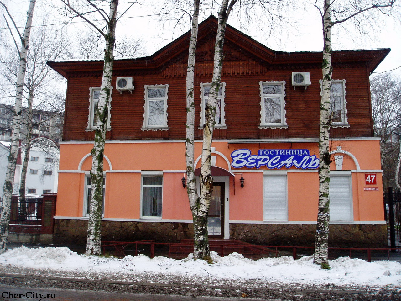 Гостиница "Версаль" расположена в центре Череповца - на перекрёстке Советского проспекта и улицы Ленина. Фото ноябрь 2008 г.
