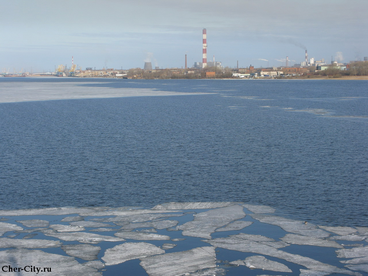 Ледоход на Шексне, фото с Октябрьского моста. Середина апреля 2009 г.