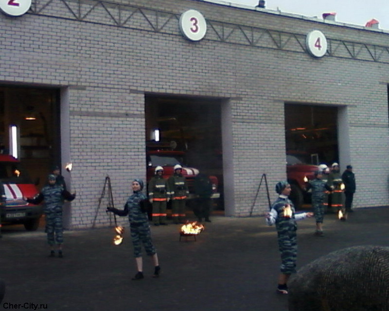 Открытие пожарного депо на ул. Рыбинской, приуроченное к Дню города. 3 ноября 2008 г. Выступление файеристов.