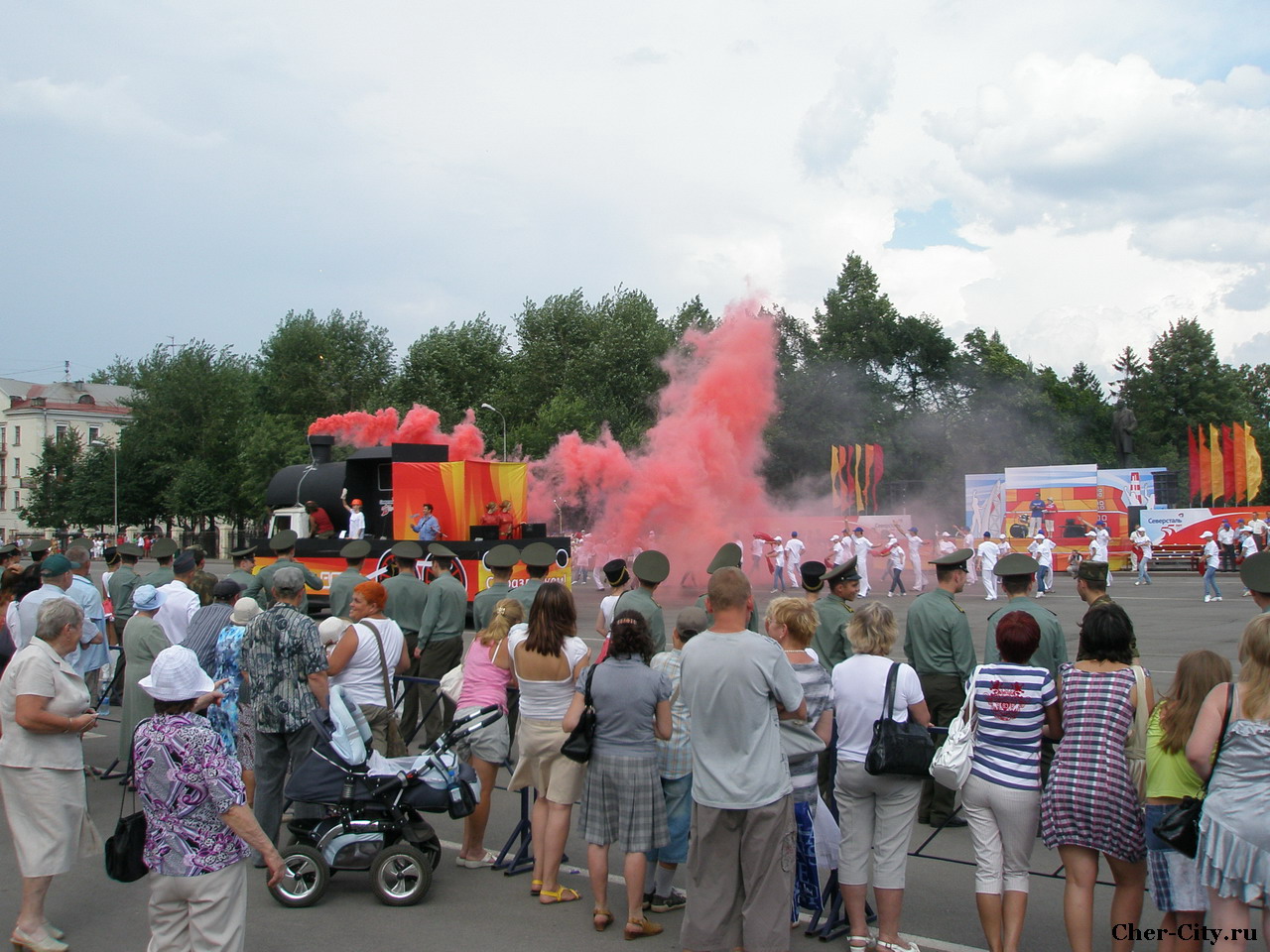 На площади металлургов из паровоза повалил дым знакомого многим череповчанам цвета.