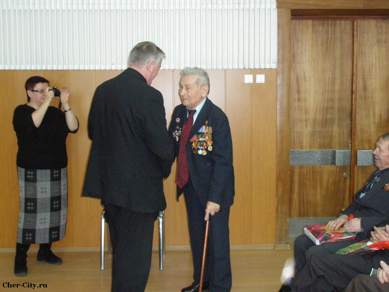 Награждение ветеранов Череповецкого района 19 февраля 2010 г. Глава Череповецкого района Родичев Л.Н. вручает юбилейную медаль и поздравляет с наступающим Днём защитника отечества ветерана Великой Отечественной войны Лапшина Григория Петровича.