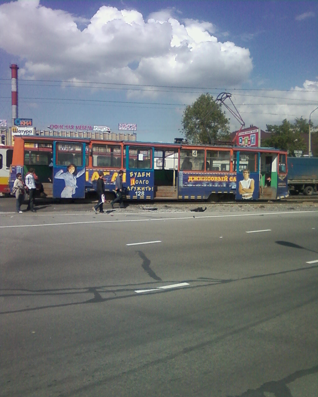 А в это время напротив ДК Химиков при столкновении с автомобилем сошёл с рельсов трамвай